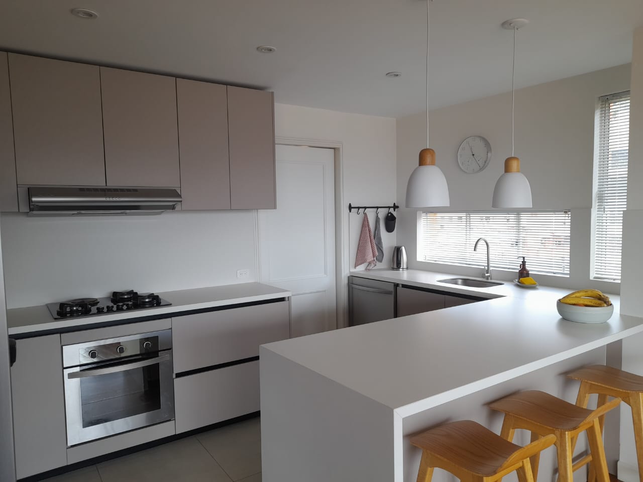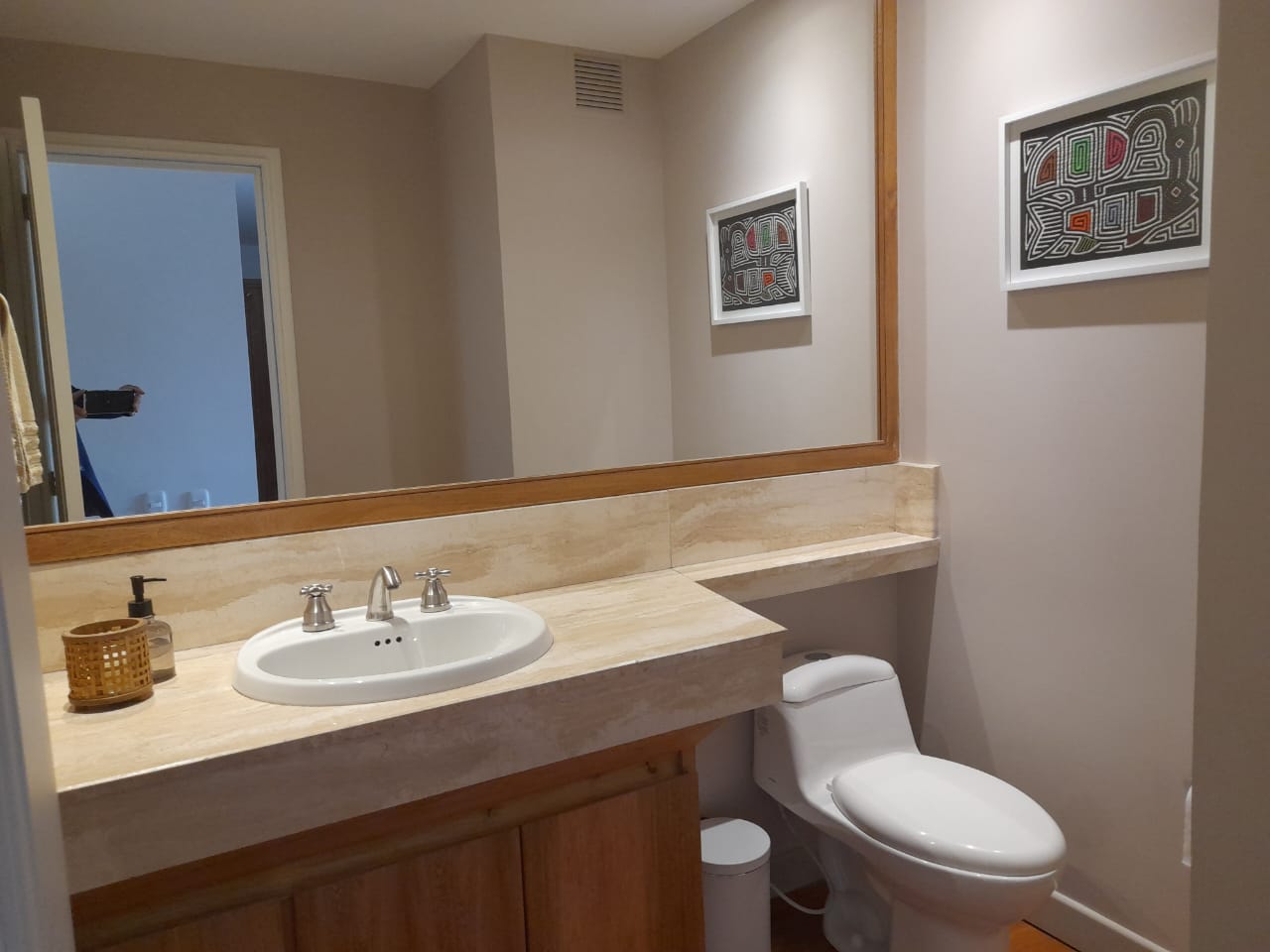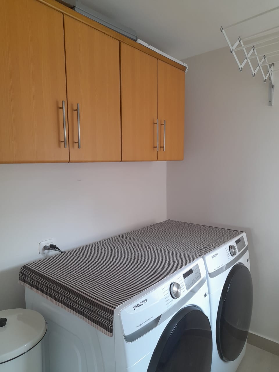 Sala / Comedor, baño social. Cocina tipo loft a gas con cómoda barra, zona de lavandería independiente con calentador de paso a gas.